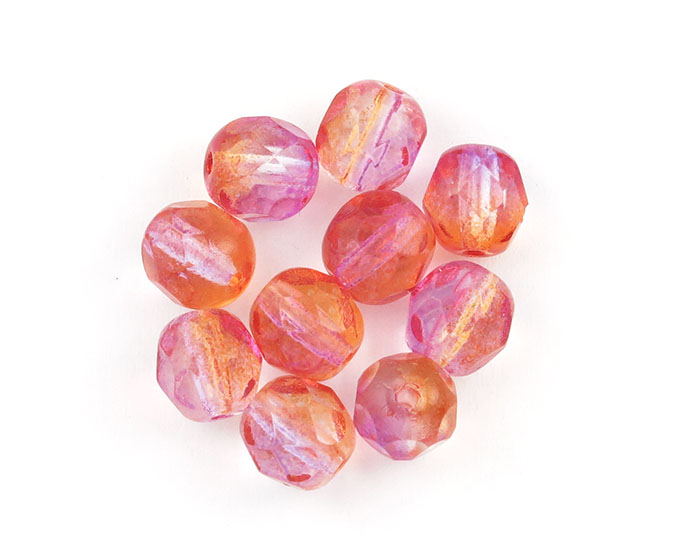 Facetovane staklene perle čeških majstora, okruglog oblika veličine 6 mm prodaju se u pakovanju od 10 komada.