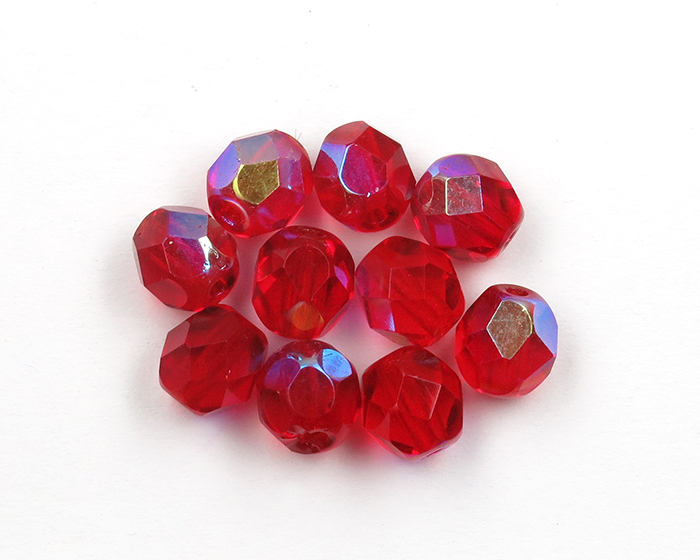 Facetovane staklene perle čeških majstora, okruglog oblika veličine 6 mm prodaju se u pakovanju od 10 komada.