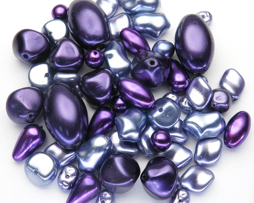 MIX staklenih perlica različitih oblika i veličina, sa bisernim premazom u raznim nijansama ljubičaste boje.
